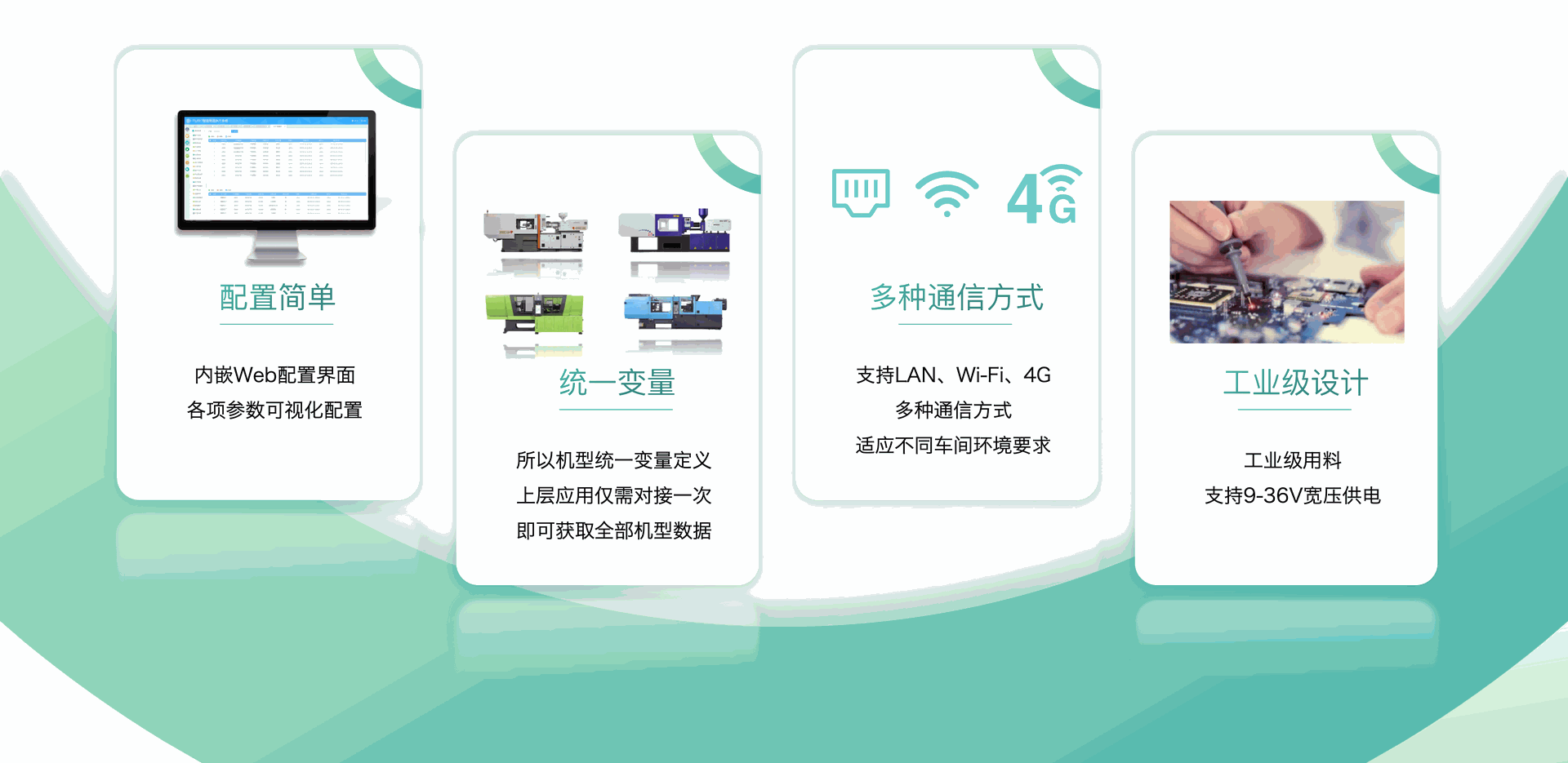 工业级设计,网口监听非侵入式采集,用于市面上主流新型注塑机采集,内嵌注塑机协议,采集详细工艺参数。
